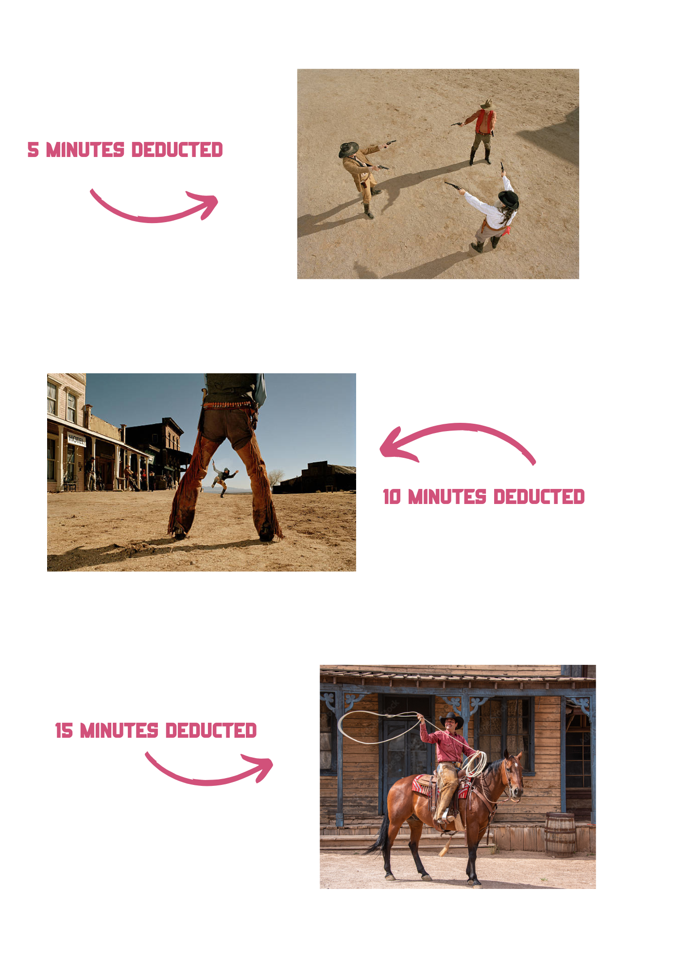 Recreate ONE of these famous iconic 'western' scenes with your team for a time deduction! We love a good laugh so bonus minutes deducted for the most creative!