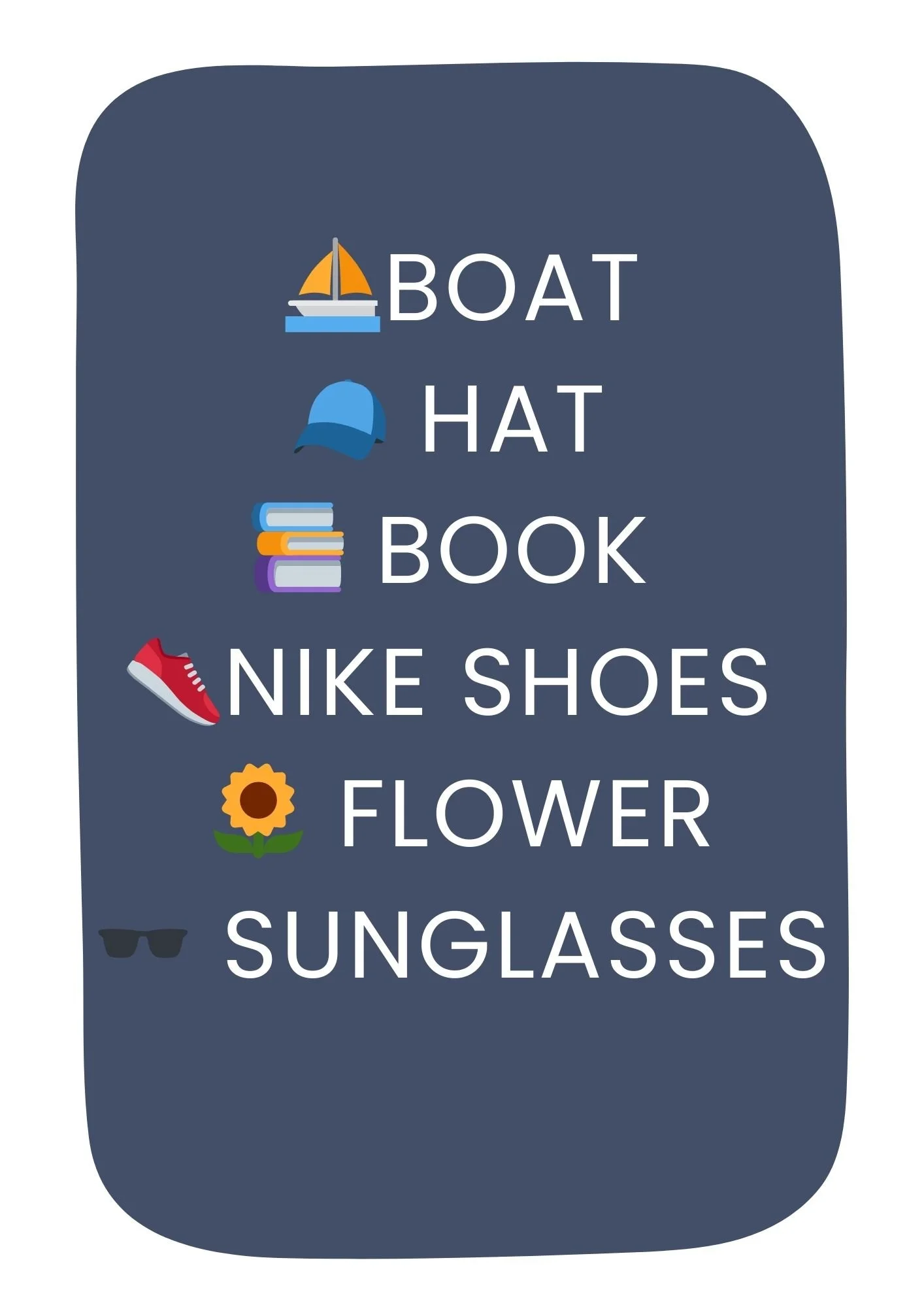 Can you get the following objects all in one photo? Failure to do this will result in a 10 minute penalty.